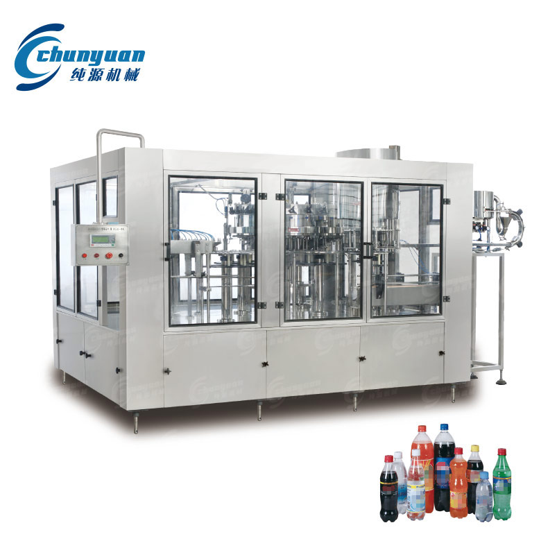 碳酸飲料機械是我國引進德國技術(shù),運用等壓灌裝原理自行設(shè)計制造,實現(xiàn)將液體灌裝到由沖瓶機送過來的洗好的瓶子中。