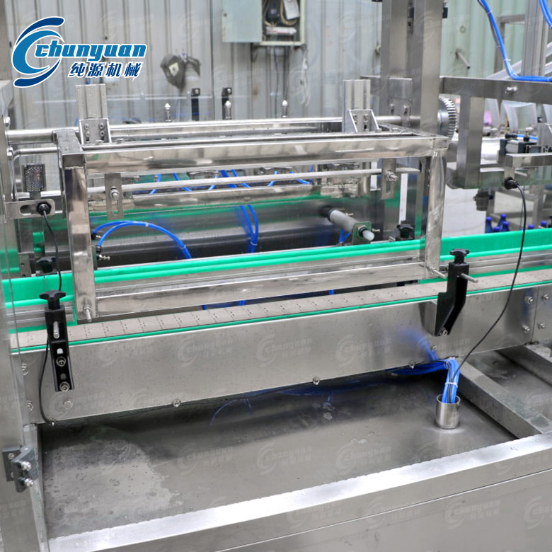 3-10L大瓶水灌裝設(shè)備灌裝速度快、液面控制穩(wěn)。采用鏈道進(jìn)瓶、沖洗、卡瓶口灌裝、封蓋、不受瓶子高矮限制,只要瓶口、瓶頸、瓶蓋尺寸相同一致,隨意更換瓶型,更換瓶型同時需更換所有拔輪導(dǎo)板即可,擰蓋頭采用磁力扭矩式,實現(xiàn)抓蓋、擰蓋功能。
