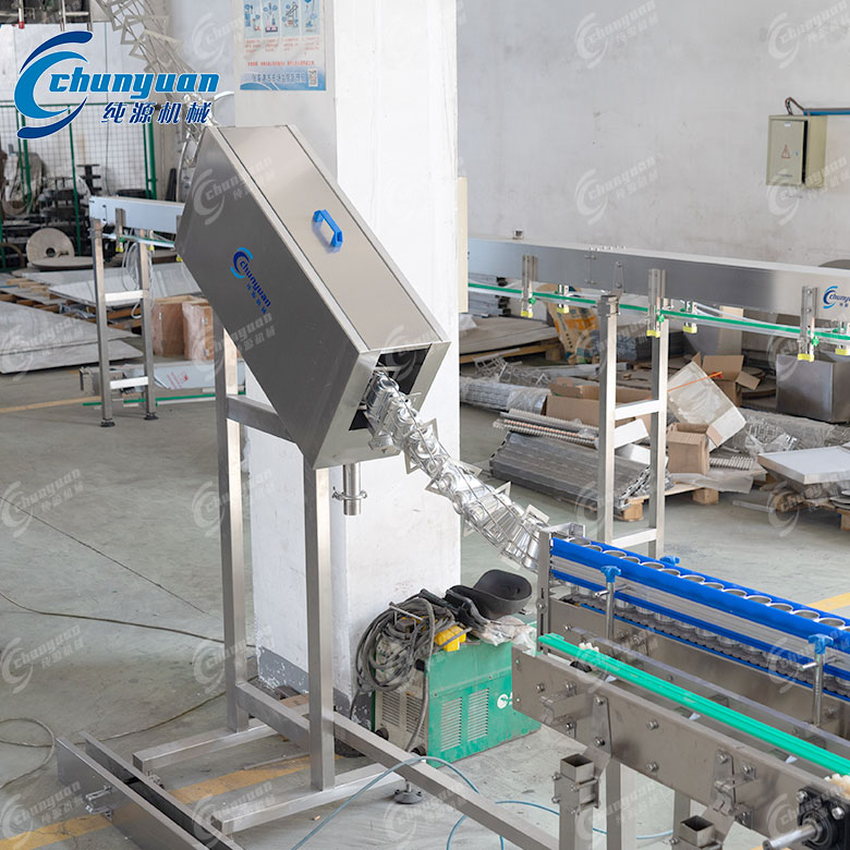 易拉罐卸垛設(shè)備通過特定的機(jī)械結(jié)構(gòu),將堆疊于棧板上的空罐,由下而上一層層的提升并推至輸送機(jī)上。整個(gè)過程由自鎖式升降系統(tǒng)裝置控制,能單獨(dú)調(diào)整上升或下降的速度,以適應(yīng)不同的操作需求???。卸罐動作通常由電機(jī)帶動鏈輪、鏈條裝置進(jìn)行,整層的空罐被推至網(wǎng)式輸送機(jī)上,然后回歸至準(zhǔn)備位置,繼續(xù)將下一層推出???。
